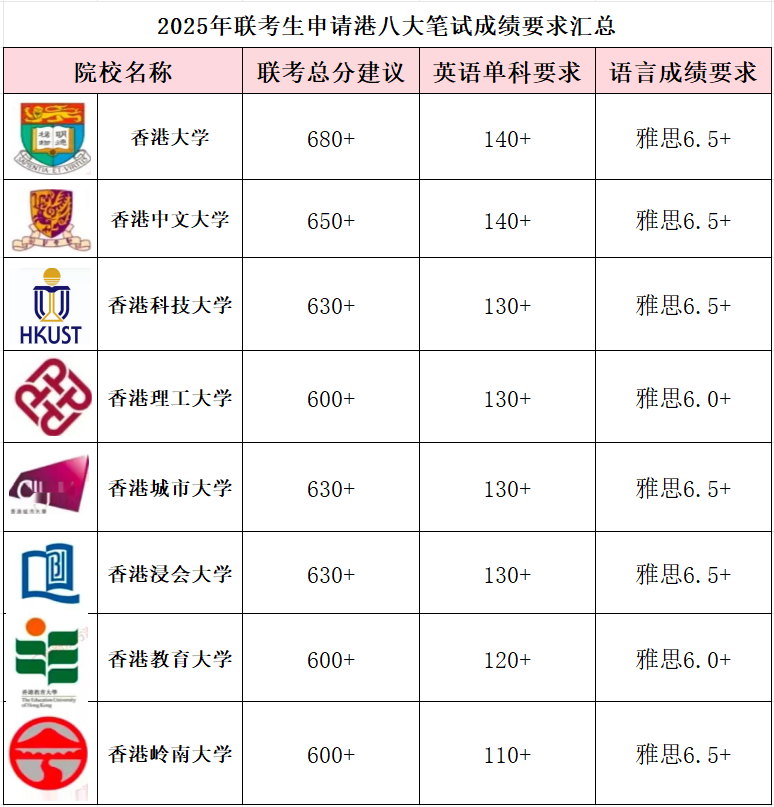 2025年联考生申请港八大