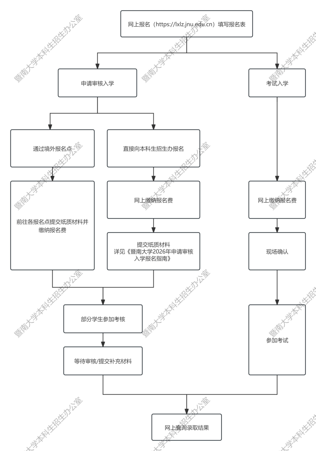 我校将根据具体审核情况,按需组织部分申请者参加笔试考核,具体安排另行通知。具体报名流程可参照《暨南大学2026年申请审核入学报名指南》(预计将于2026年3月在暨南大学本科招生网公布)。