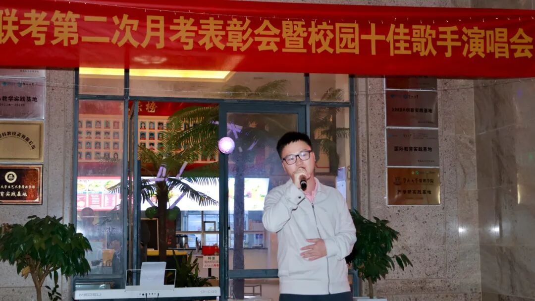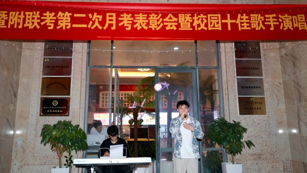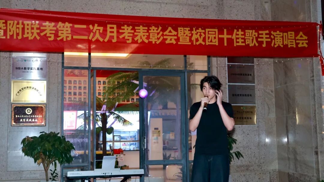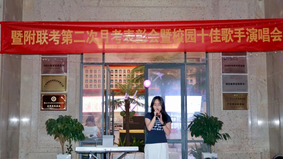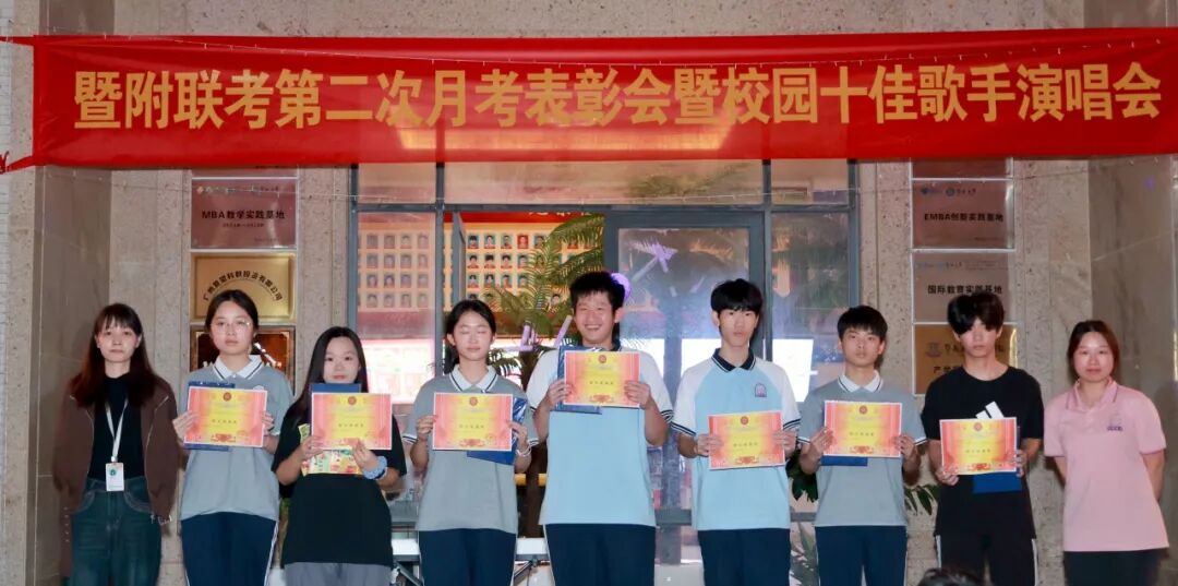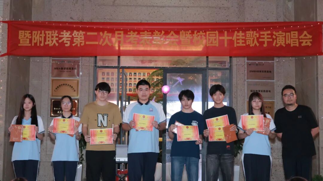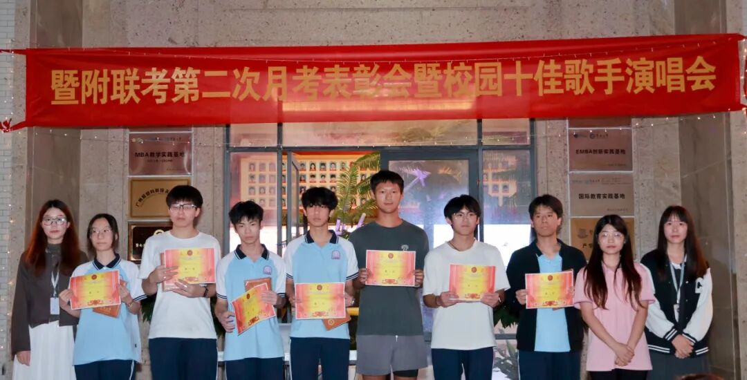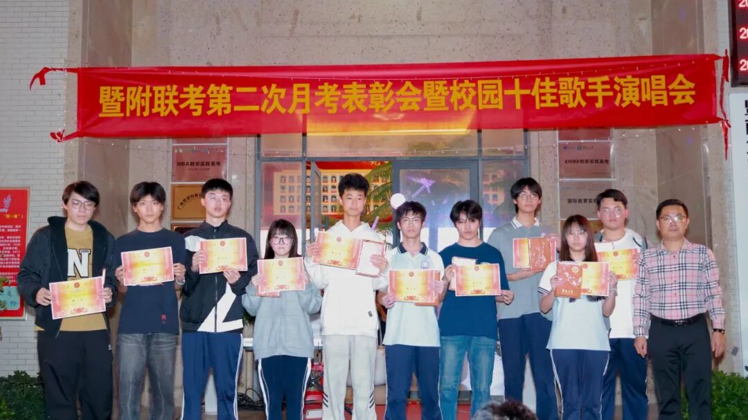 为表彰在第二次月考中取得优异成绩的学子,树立学习榜样,同时丰富校园文化生活,营造积极向上的校园氛围,劳逸结合助力学习质效提升,暨附联考于2025年11月6日在学校文化长廊,举办“第二次月考表彰会暨校园十佳歌手演唱会”。现场反响热烈,欢声笑语间,暨附学子们奋发进取的雄心壮志油然而生!