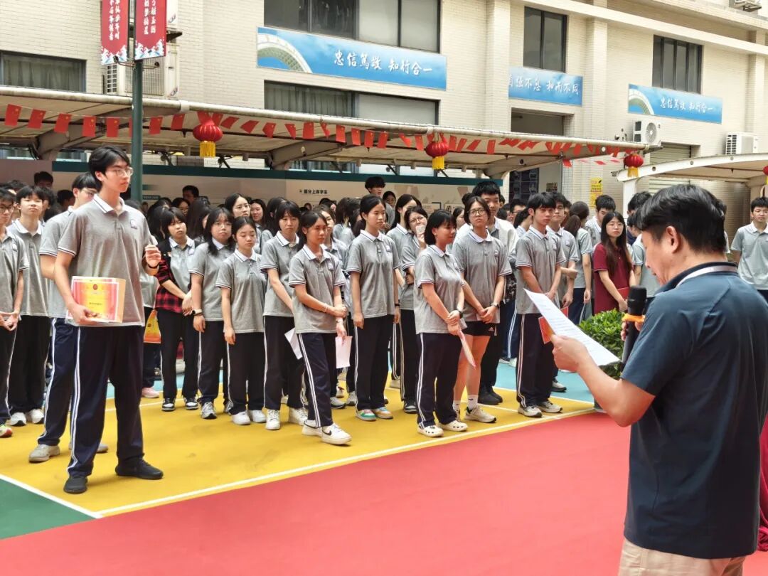 陈副校长以"少年自当扶摇上,揽星衔月逐日光"勉励全体学子,高度赞扬暨附学子在第二次月考中展现出的昂扬斗志与进取精神。此外,陈校长更是殷切寄语:既要有仰望星空的志向,更需脚踏实地的坚持。求学路上,不必因一时佳绩而自矜,也勿为暂时困境所动摇。唯有持之以恒地挖掘潜能,方能拾级而上,终抵青云。