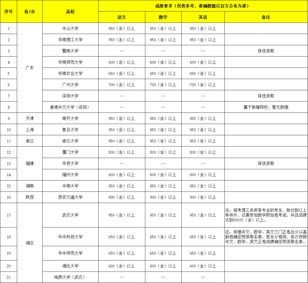 共21所内地高校,仅限澳门考生可报。最新数据和信息以官方公布为准。