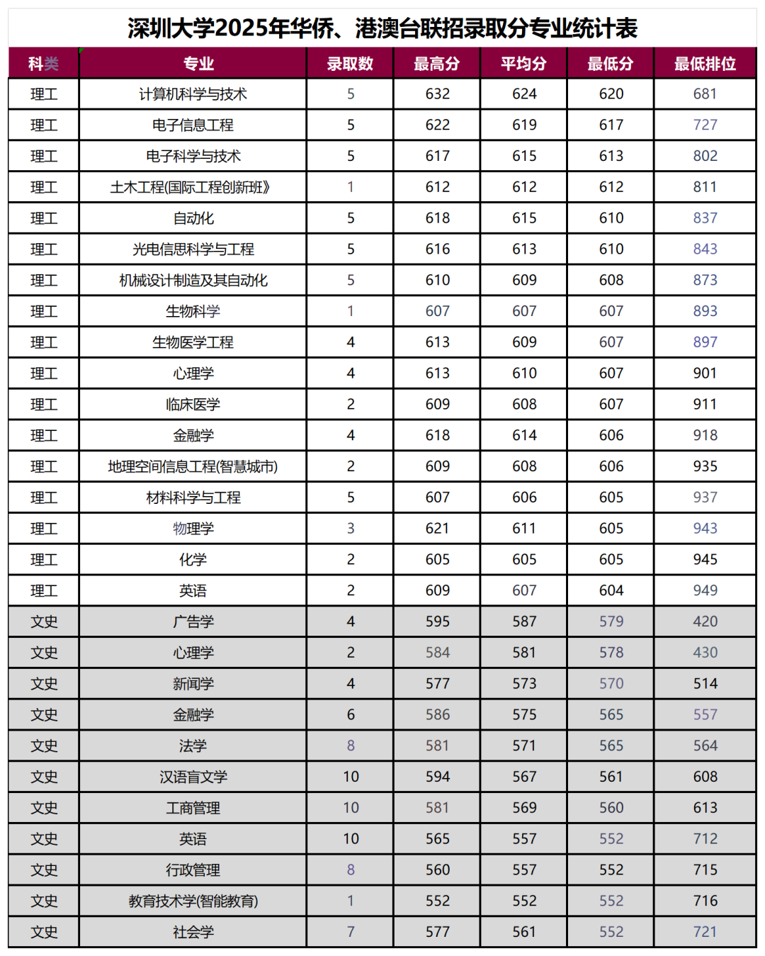 2. 文史类(最低分≥552分,排位≤721)