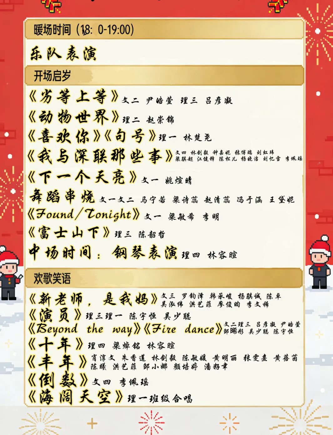 感谢全体演职人员:日夜排练打磨细节,用汗水与热爱为我们呈现一场视听盛宴,每一个舞台上的身影,都是这个冬日最耀眼的光;