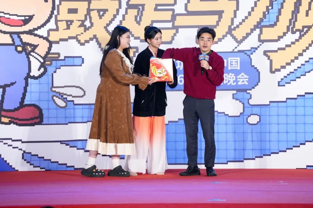 中场的12月同学生日庆祝与万众期待的互动抽奖,一同将晚会推向了欢乐的高潮。大屏幕上,老师们温柔的祝福视频缓缓流淌,暖意浸透了晚会的每一个角落,为寿星们送上最真挚的祝福;随后的抽奖环节,每一次幸运的揭晓,都伴着此起彼伏的欢呼与尖叫。即便没能抽中奖品,掌心的糖果与蛋糕也裹着甜意,让这份温暖在每个人的心头慢慢漾开。