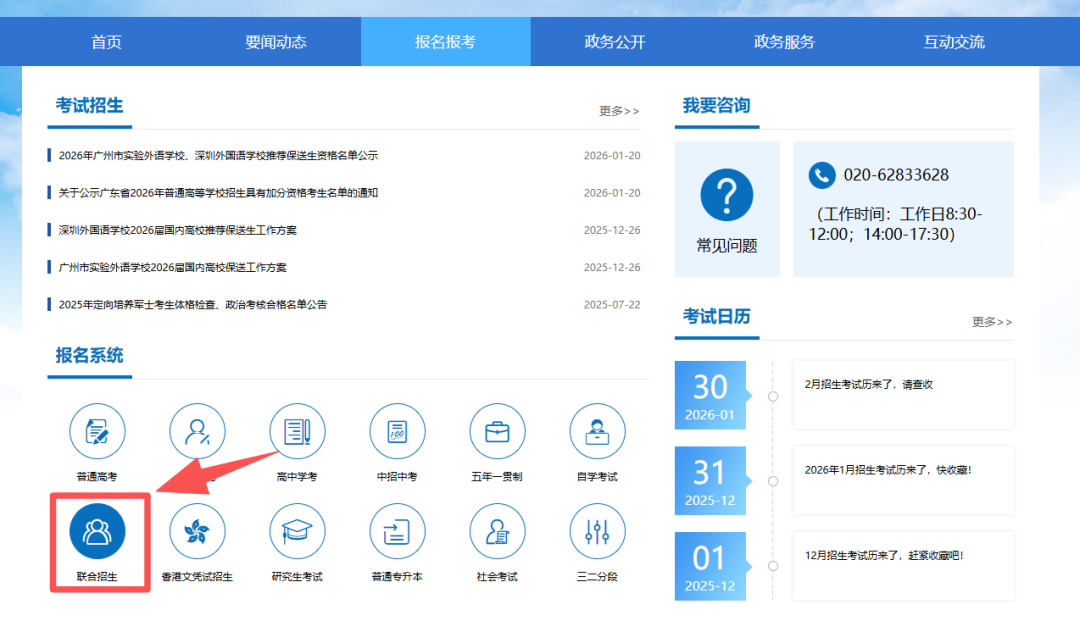 >跳转页面后,点击【报名系统-联合招生】。